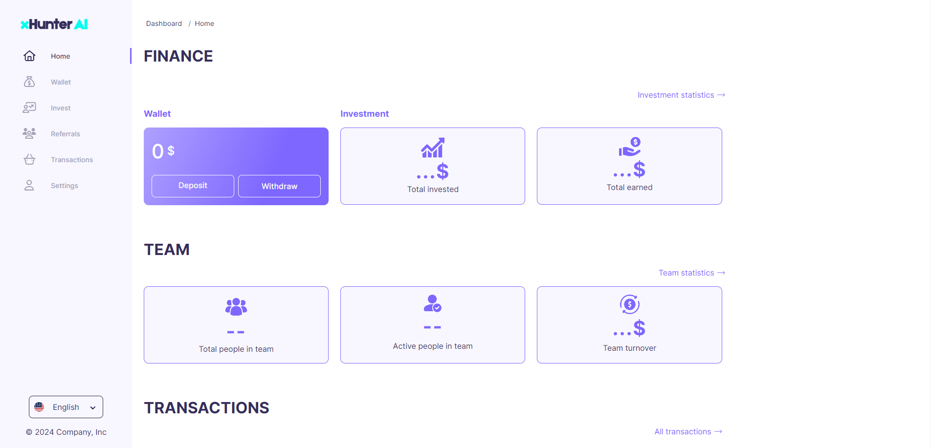 After successfully sending funds to your deposit address, they will be reflected in your balance on the xHunter AI platform. Now you are ready to start investing on our platform. Good luck with your transactions!